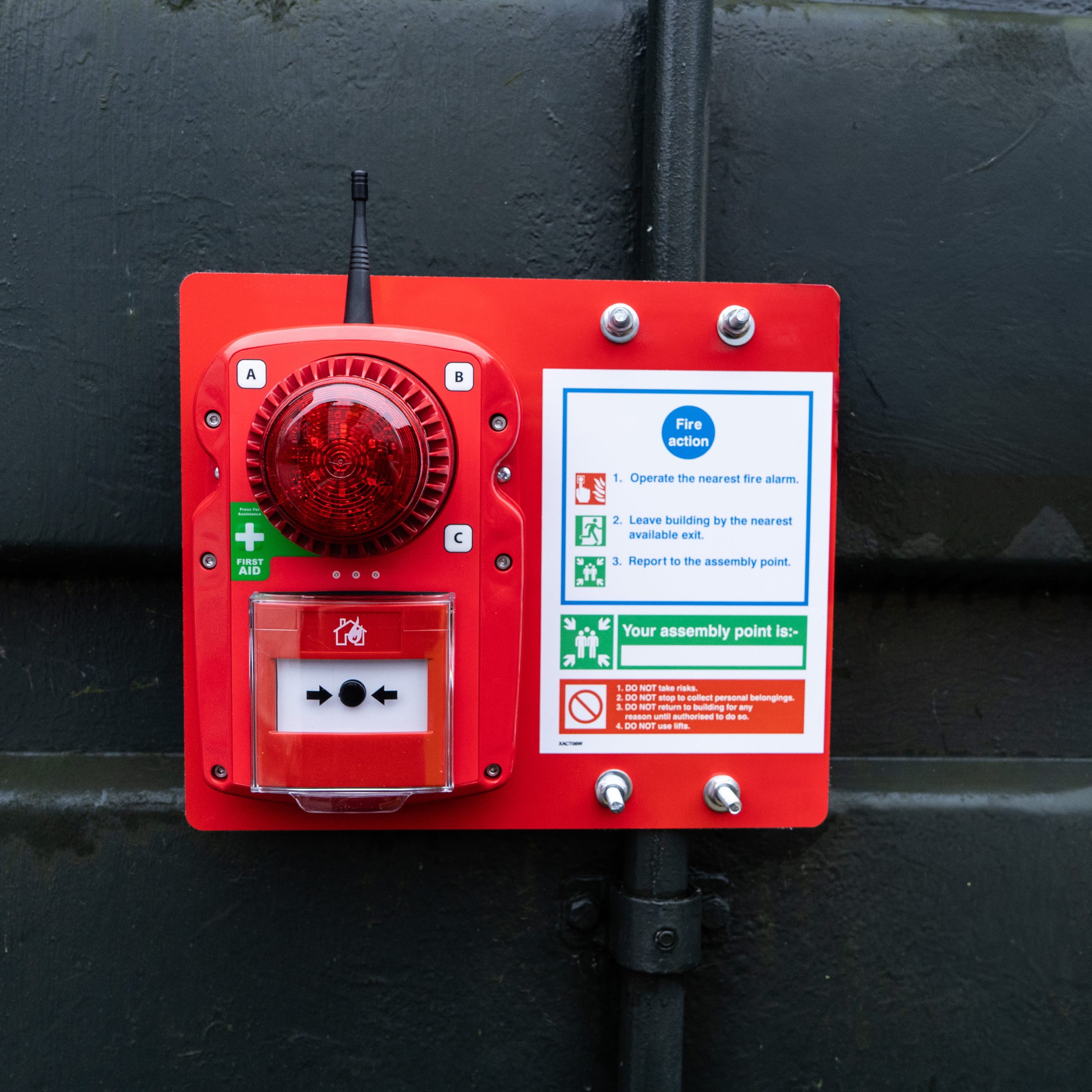 For improved visibility and compliance, the mounting board is available with optional Fire Action signage. This helps clearly identify alarm locations and provides guidance during emergency situations.